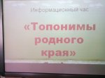 18 апреля отмечается Международный день памятников и исторических мест (День всемирного наследия) — праздник, напоминающий о важности сохранения культурного наследия. В честь этой даты для учащихся 4‑го класса прошёл информационный час «Топонимы родного края».